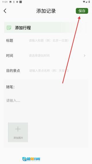 2、在【添加记录】页面填写标题、时间等信息,上传图片后点击【保存】。