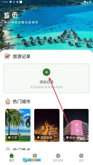 1、在首页【旅游记录】区域,点击【添加记录】按钮,开启旅行记录创建。