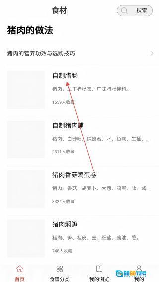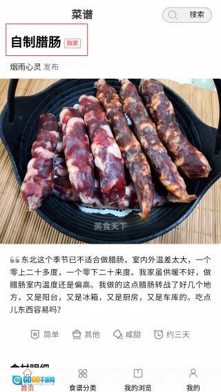 3、选感兴趣的做法(如自制腊肠),进入菜谱详情。