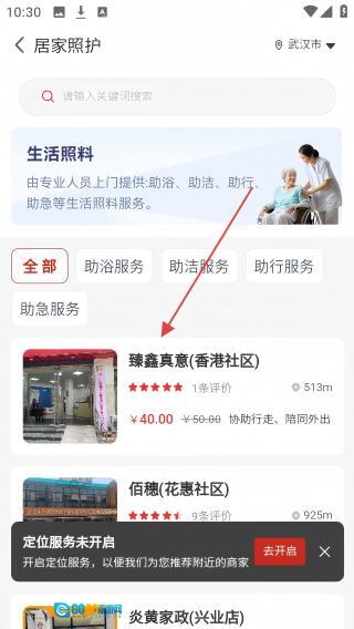 1、在安养链首页,点击【居家服务】图标进入分类页。
