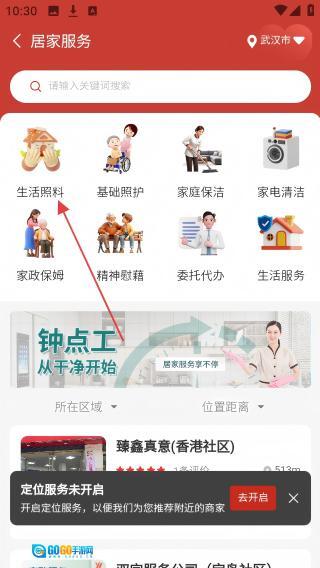 2、在居家服务页面,点击【生活照料】分类进入服务列表。