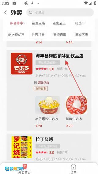 2、选择【海丰县梅陇脱水冰饮品店】,进入商品页。