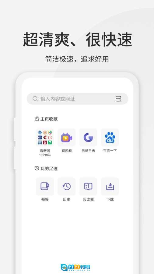 1、乐感浏览器运用极简清爽的界面设计,拥有主页收藏功能和特色聚合搜索,目标网站一键直达,即使断网也不受影响。