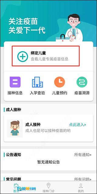 第二步,点击首页中的成人接种,输入身份证等信息绑定档案。