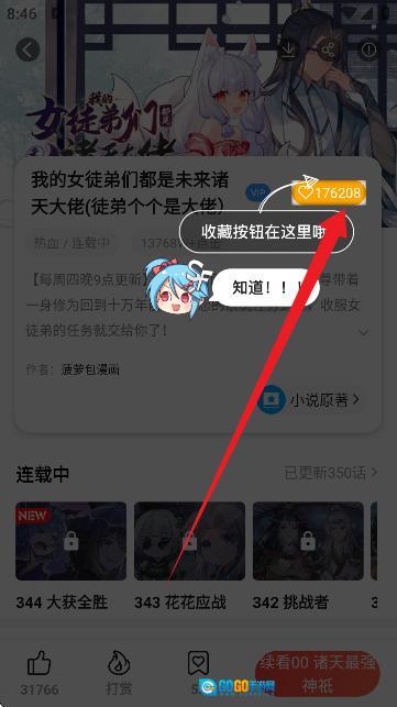5、接着点击图中所示的按钮,便能把自己喜爱的作品收藏起来,方便之后快速查看。