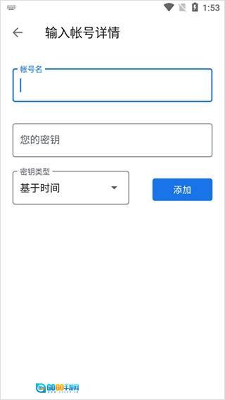 3、输入应用程序或网站给出的账号与密钥,点击“添加”按钮。