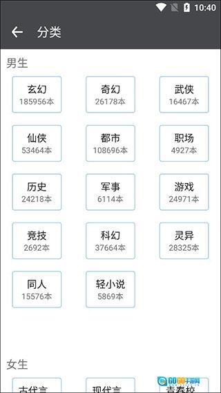 专门的男女频道,为男生和女生提供不同的阅读空间。