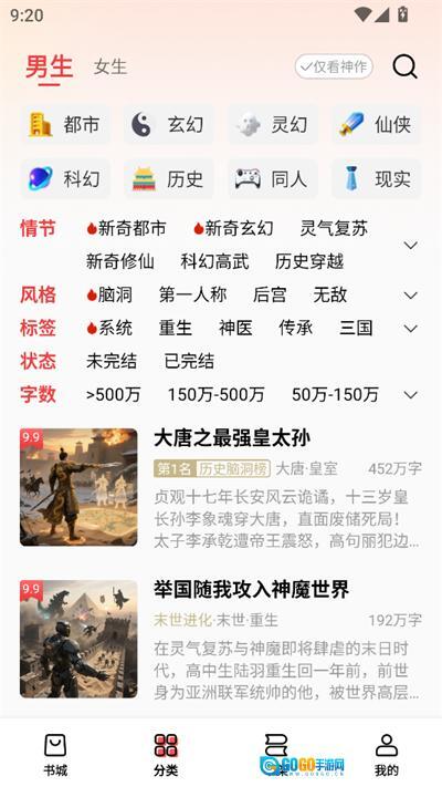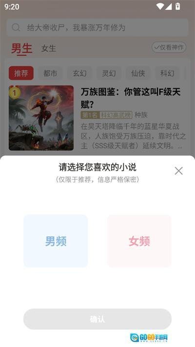 进入之后选择男频或者女频