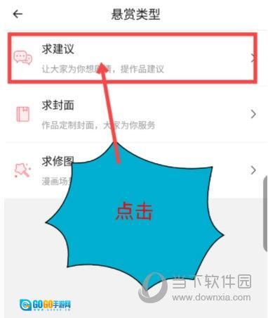 在打开的悬赏类型界面中,点击最上面的求建议选项。