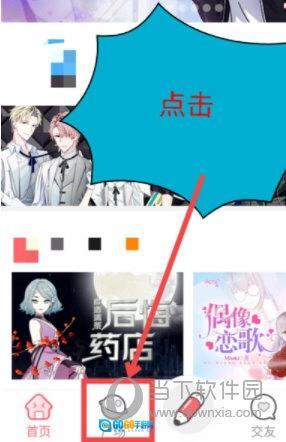 打开广场界面后,点击屏幕中间右边的黄色加号。