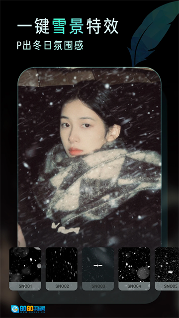 3、Koloro滤镜君数十种重叠效果,如光斑、漏光、雪花等,可以很容易地为你的相片增加气氛。