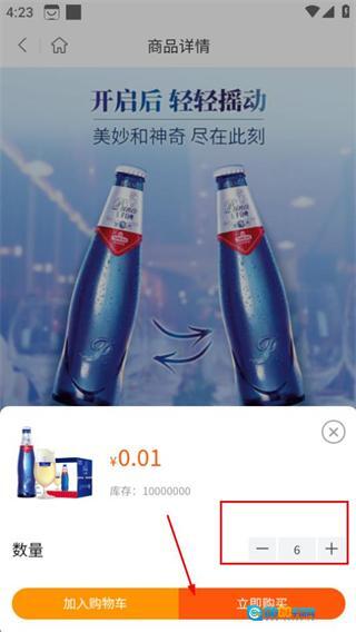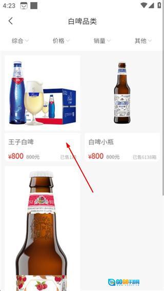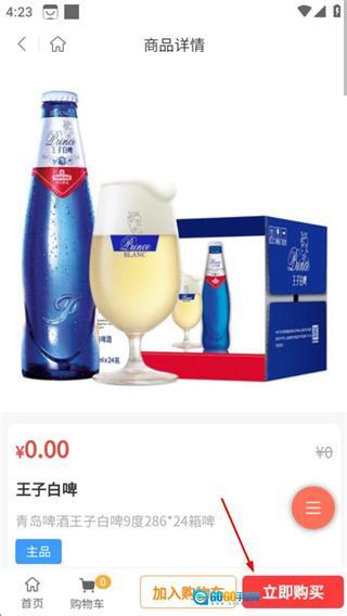 2、在白啤商品列表页,选择王子白啤,进入该商品的详情页面。