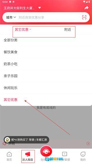 2、在达人探店页面,可借助【其它优惠】和【附近】这两个筛选栏,挑选具体分类(像餐饮美食、亲子乐园等),从而精准定位到想要的优惠信息。