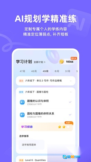 1、通过智能技术深度解析学习行为数据,精准诊断学习薄弱环节,并智能匹配与之对应的针对性练习内容。