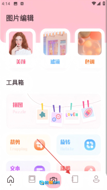 1、打开图片编辑功能,点击底部的相册类图标,进入【我的相册】页面。