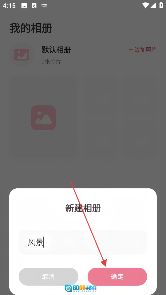3、在新建相册的输入框里填写好相册名称,然后点击【确定】按钮,这样就完成新相册的创建了。