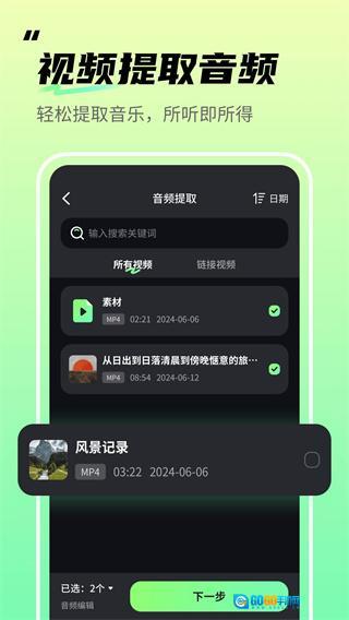 1、音频剪辑君,一键提取视频中的音频,轻松获取你想要的音乐,听到什么就能得到什么。