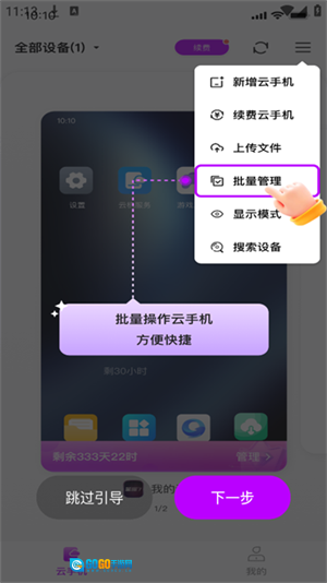 3、点击批量管理可以进行批量操作云手机。