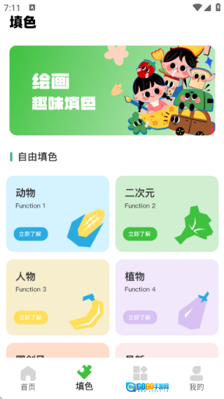 2、填色专区包含动物、植物、二次元等多种风格的线稿,能够满足大家个性化的填色需求。