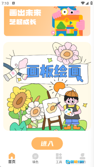 首页设有画板绘画功能,用户可点击进入体验。