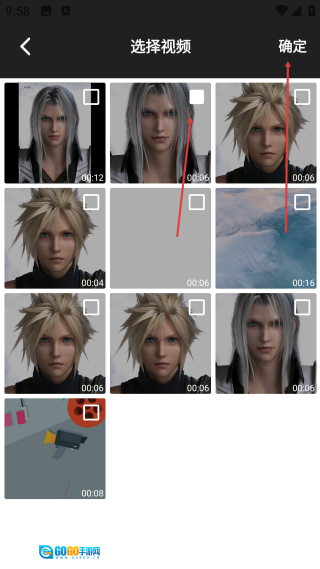 3、进入选择视频页面后,选中【目标视频】,接着点击右上角的【确定】按钮,即可进入视频变速页面。