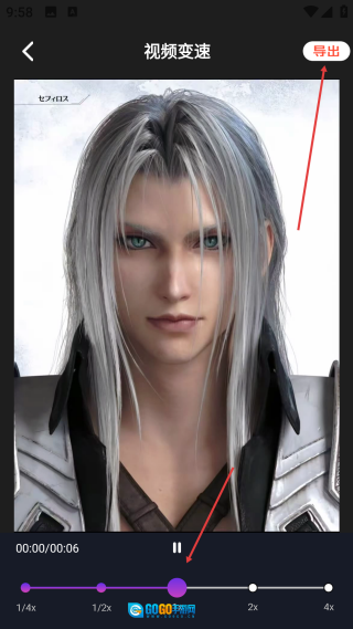 4、进入视频变速页面后,先对速度参数进行调整,接着点击页面右上角的【导出】按钮,这样就能完成视频变速的操作了。