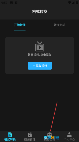 1、打开格式转换页面,点击底部的【视频工具】选项,进入视频工具功能页面。