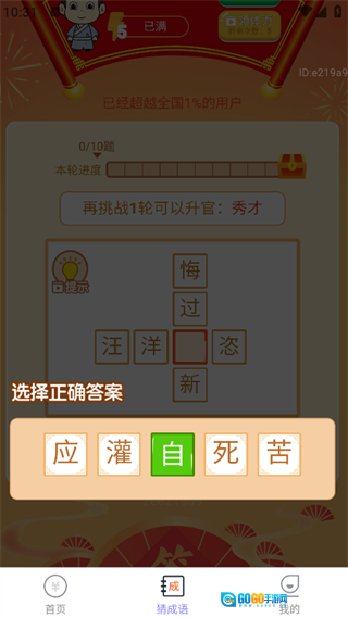 3. 点击页面下方的“猜成语”选项,就能按照页面给出的提示,开启游戏之旅;