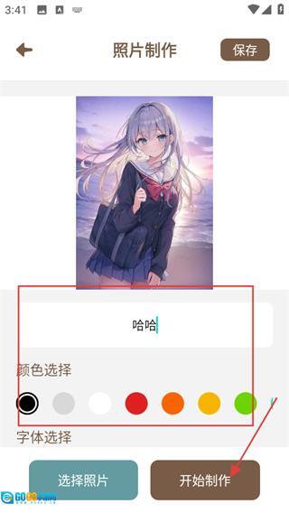 在照片制作页面,输入文字内容、挑选喜欢的颜色,然后点击“开始制作”按钮,就能生成带有照片的签名了。