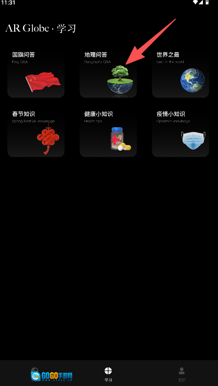 2、寻找到“地理问答”功能图标后点击它,即可进入知识问答模块。