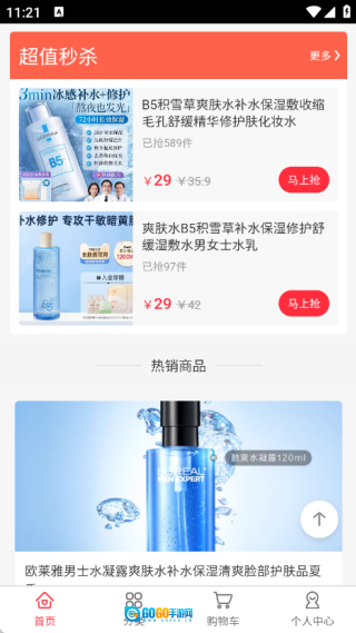 首页设有超值的限时秒杀活动,同时也展示了各类热销商品。