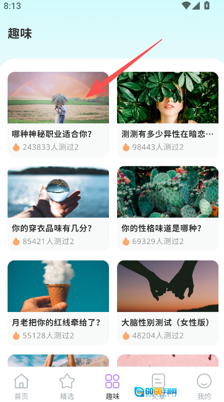 1、打开软件点击趣味板块、进入对应页面。