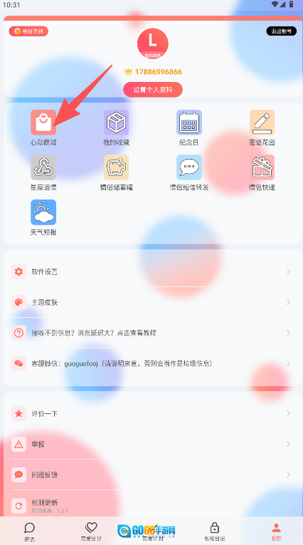 3、在“我的”页面找到“心动商城“入口即可进入。