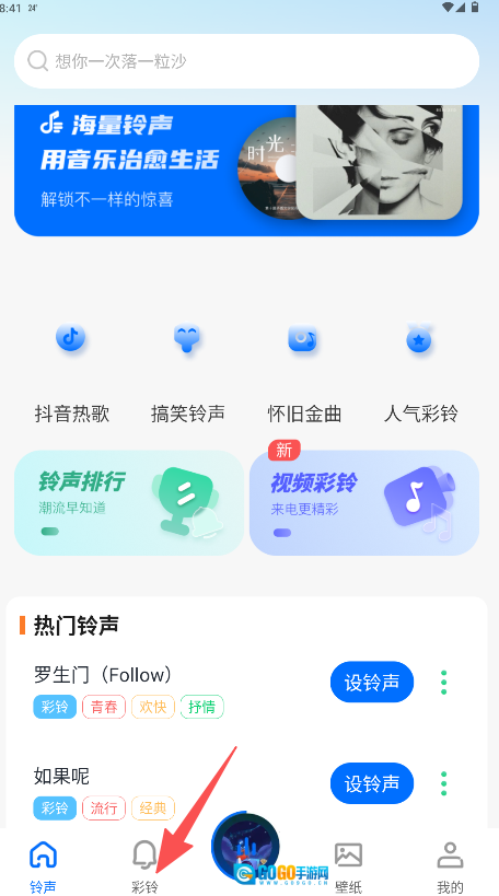 1、在底部导航栏点击“彩铃”图标进入专区。
