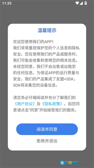 1、安装该软件并将其打开,点击“阅读并同意”相关选项,随后进入软件的主界面;