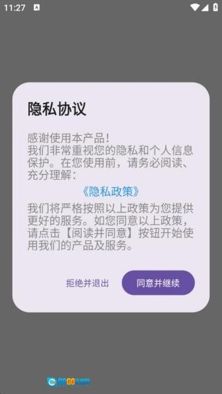 1、完成软件安装并进入后,若弹出隐私协议页面,点击“同意并继续”按钮即可。