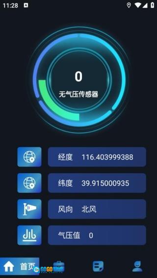 进入平台首页后,不仅能获取经纬度等数据信息,还可以查看风向、气压值等数据。