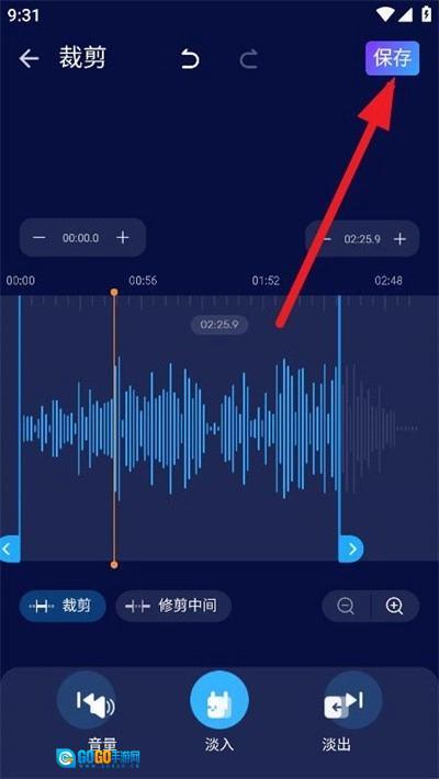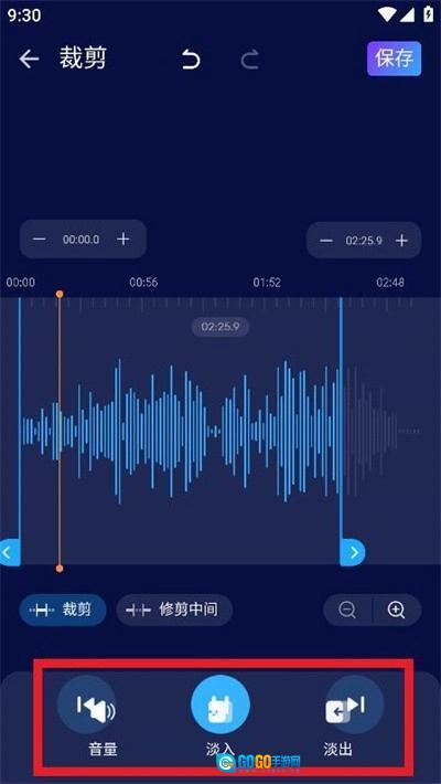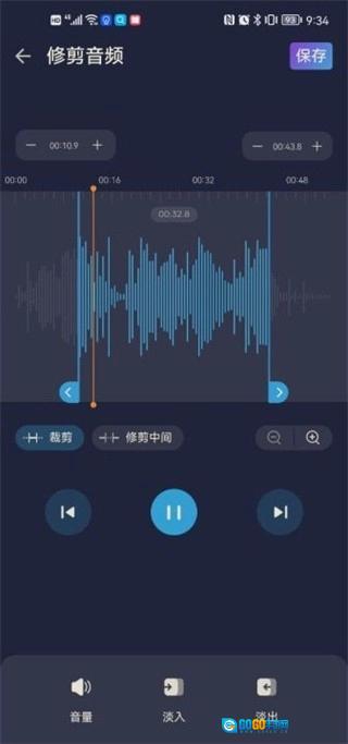 3.进入编辑界面后,你可以对音频片段进行自由裁剪,也能借助音量调节、淡出及淡入功能来优化音频效果。