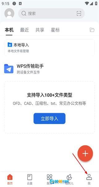 打开软件后,进入首页,这里会展示本地导入等功能选项,接着点击右下角的“我”,就能进入个人功能页面。