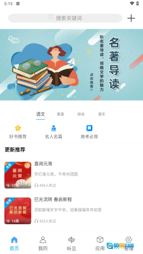 听见时代是个实用的音频学习平台,在这儿,你能聆听这个时代的声音。平台里有中外名著及解析、小初高英语、每日新闻等多样内容,你可以挑选自己感兴趣的来听。这里的学习资料十分丰富,你能轻松积累语文素材,提升英语听力水平。要是喜欢这款软件,就快来体验吧!