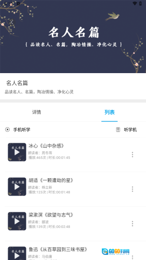 2、进入名著专区,浏览里面的名著推荐,然后点击其中一部名著来收听其内容