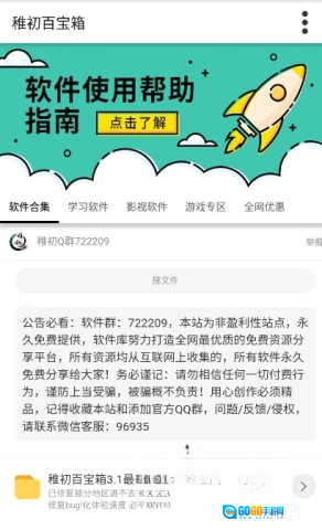 稚初软件库是一个汇聚多元资源的宝藏平台,学习、影视、辅助、游戏等各类特色软件应有尽有,每日持续更新新鲜内容。加入社群交流,与更多同好一起发掘心仪资源,期待你的加入!