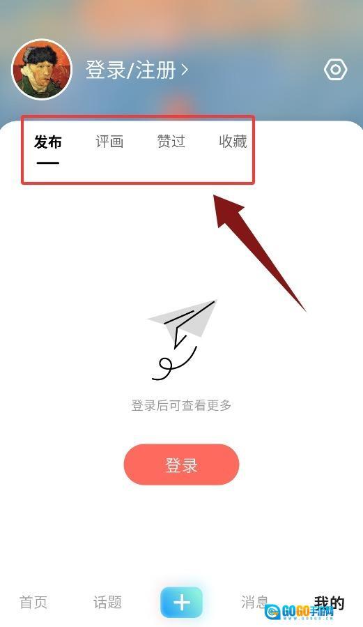 4、个人中心整合了用户发布的作品以及评画、点赞、收藏的历史记录。