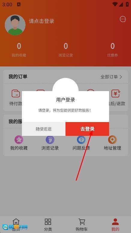 3、在用户登录弹窗中,点击去登录,进入登录页面。