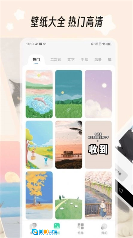 3、挑选心仪的壁纸,涵盖热门、二次元、文学、手绘、风景等各类主题。