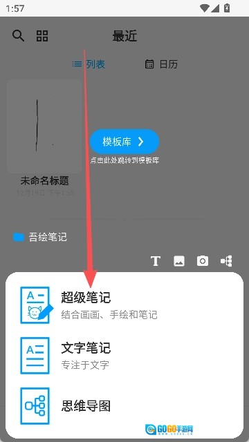 2.在弹出来的弹窗中,选择超级笔记