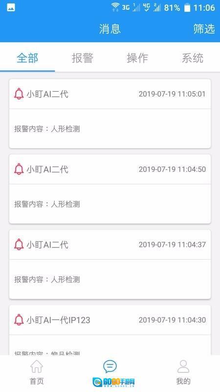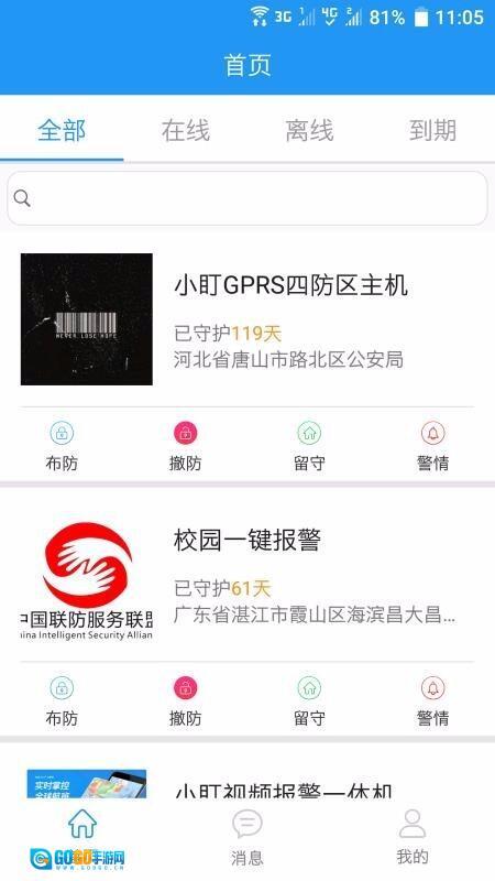 6、若要查询设备警情数据信息,既能够选择特定设备查看相应警情,也可切换至消息中心查看全部警情。