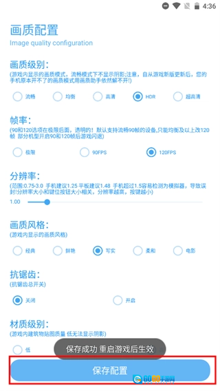 4、选择好自己想要的配置,点击“保存配置”,重新打开游戏即可
