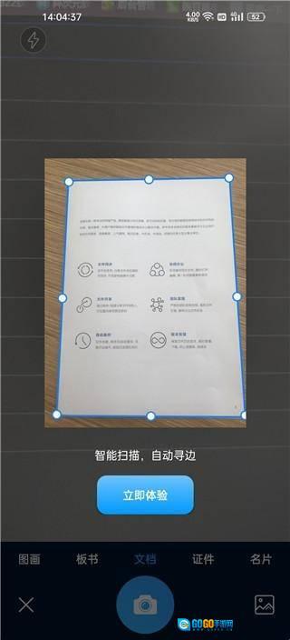 2、相机会自动扫描,自动寻边。