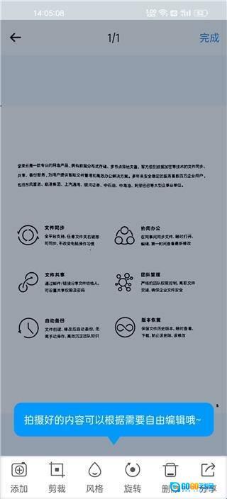 3、免费云备份,每月1GB免费上传流量,扫描内容自动上传并安全存储。